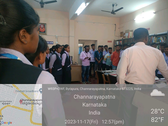 On the occasion of National Library Week on Friday 17th November 2023, Competitive Books were displayed by Library Information Centre. Librarian Kavitha J.N., advised the pupils to use the library's collection of books wisely and to cultivate a skill-oriented personality if they wanted to succeed in the workforce of today. Mr. Sridhara AN Placement Officer, our library has raised awareness of the books needed to prepare for the UPSC and KPSC exams. He advised any students who aspired to work for the government to develop the habit of reading those books. The HoD of the English department, Mr. Ningaraju, spoke and provided details about each book. The UPSC test consists of three components, and he demonstrated to the students which books they should read in each section.